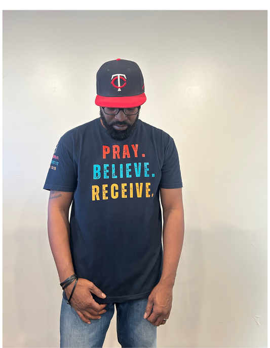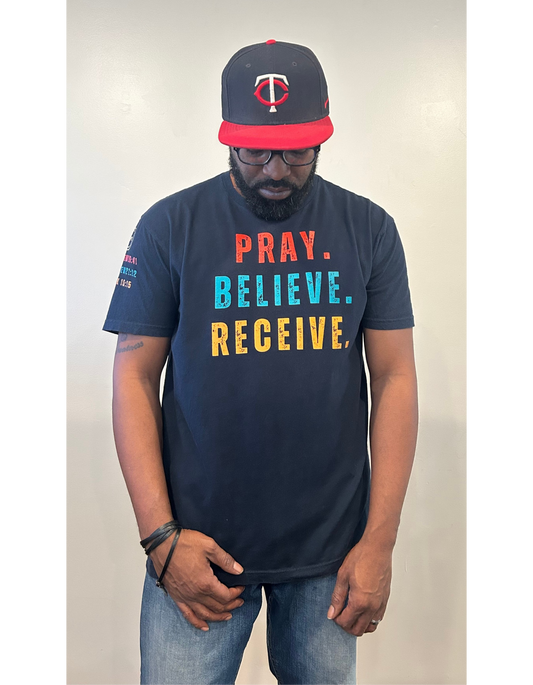 Pray Believe Receive Tee-Navy