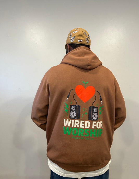 Wired for Worship Hoodie- Brown